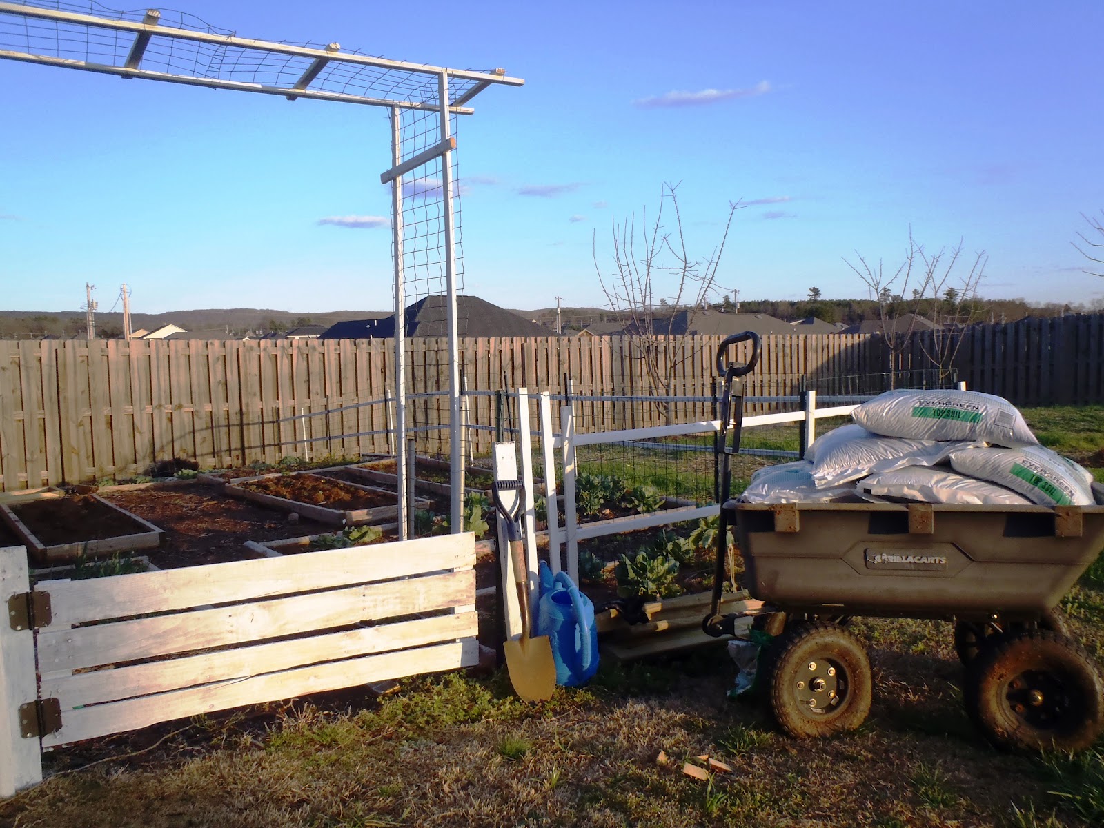 I also want to take advantage of these warm days that comes and goes so I've given my garden a little manicure. I've added a simple entrance arbor for my bitter gourd, gate and white fence for appearance using pressure treated 1X2's.
